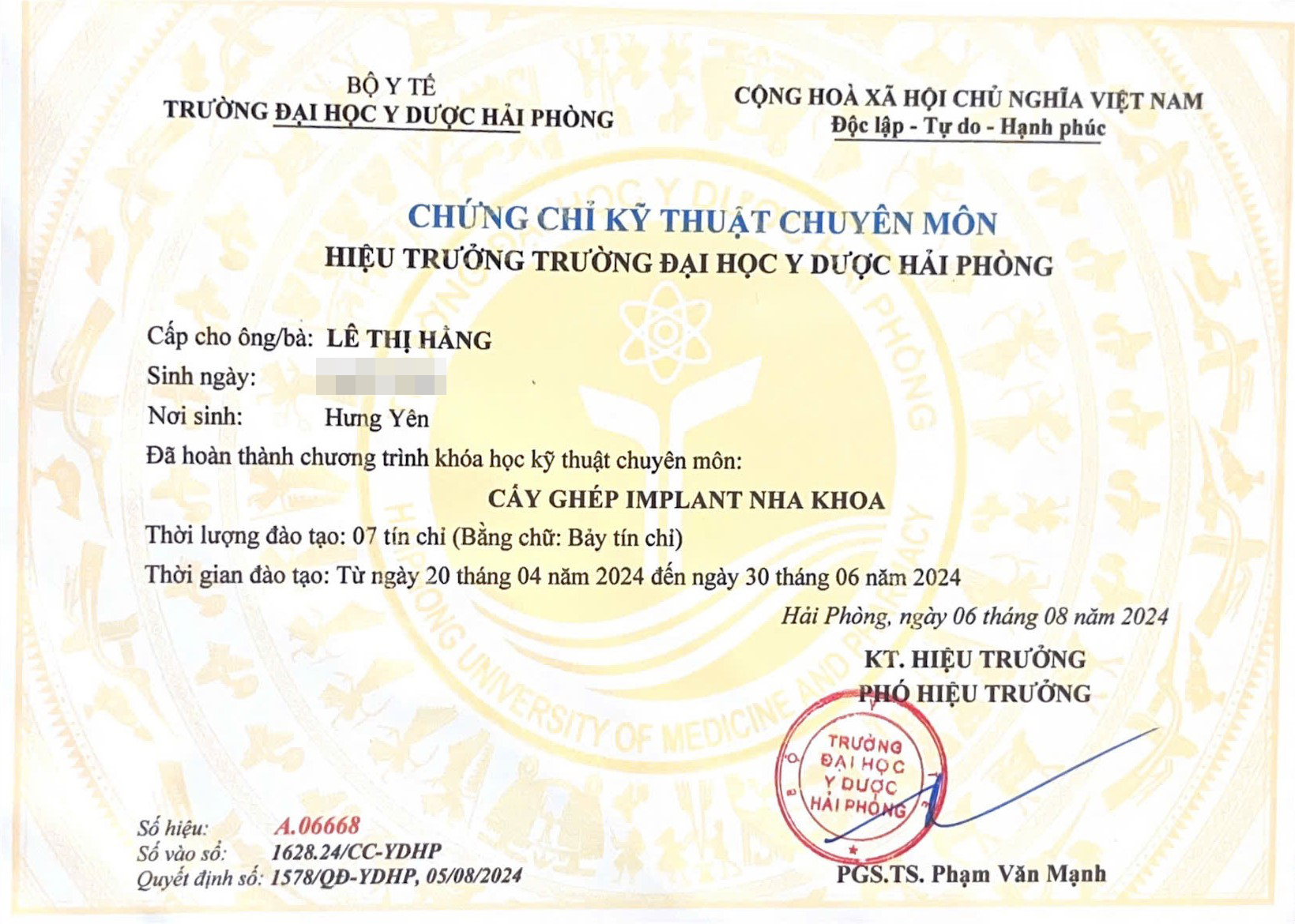 Bác sĩ niềng răng Lê Thị Hằng lựa chọn ngành Răng – Hàm – Mặt như một sự đồng điệu tự nhiên với tính cách tỉ mỉ, kiên nhẫn và yêu cái đẹp. Sau 6 năm học tập tại Đại học Y Dược Hải Phòng, bác sĩ tốt nghiệp chính quy chuyên ngành Răng – Hàm – Mặt, tiếp tục theo đuổi đam mê bằng việc tham gia nhiều khóa đào tạo chuyên sâu như Chỉnh hình răng mặt tại ĐH Y Hà Nội và Chương trình đào tạo chỉnh nha liên tục.