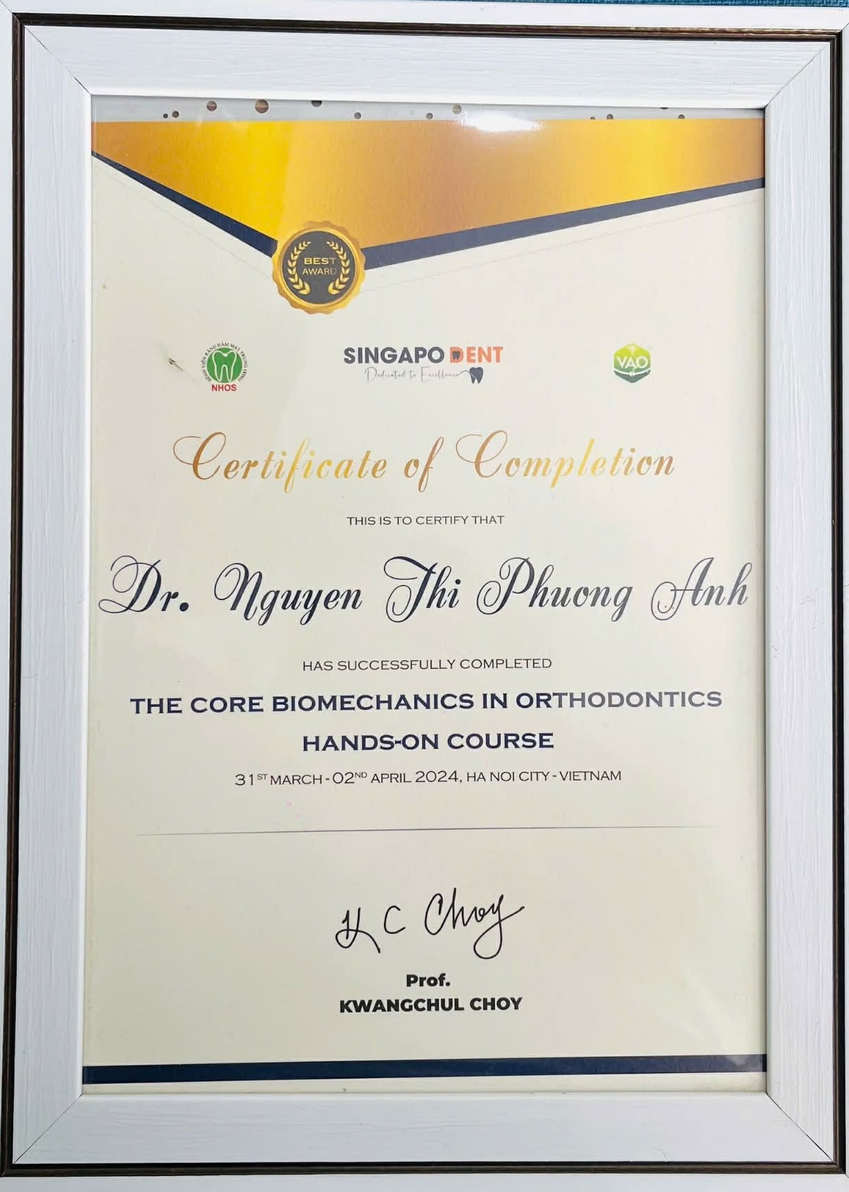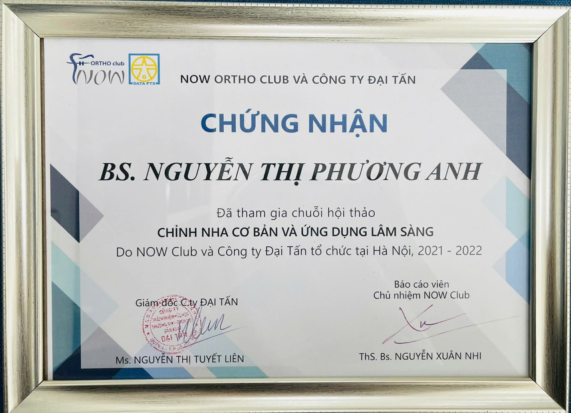 Để thực hiện niềng răng chỉnh nha cho khách hàng thì kiến thức chuyên môn thôi là chưa đủ, bác sĩ Phương Anh đã tham gia các khóa học chuyên sâu, đào tạo về nghiệp vụ bác sĩ chỉnh nha và được Bộ Y tế cấp chứng chỉ hành nghề.
