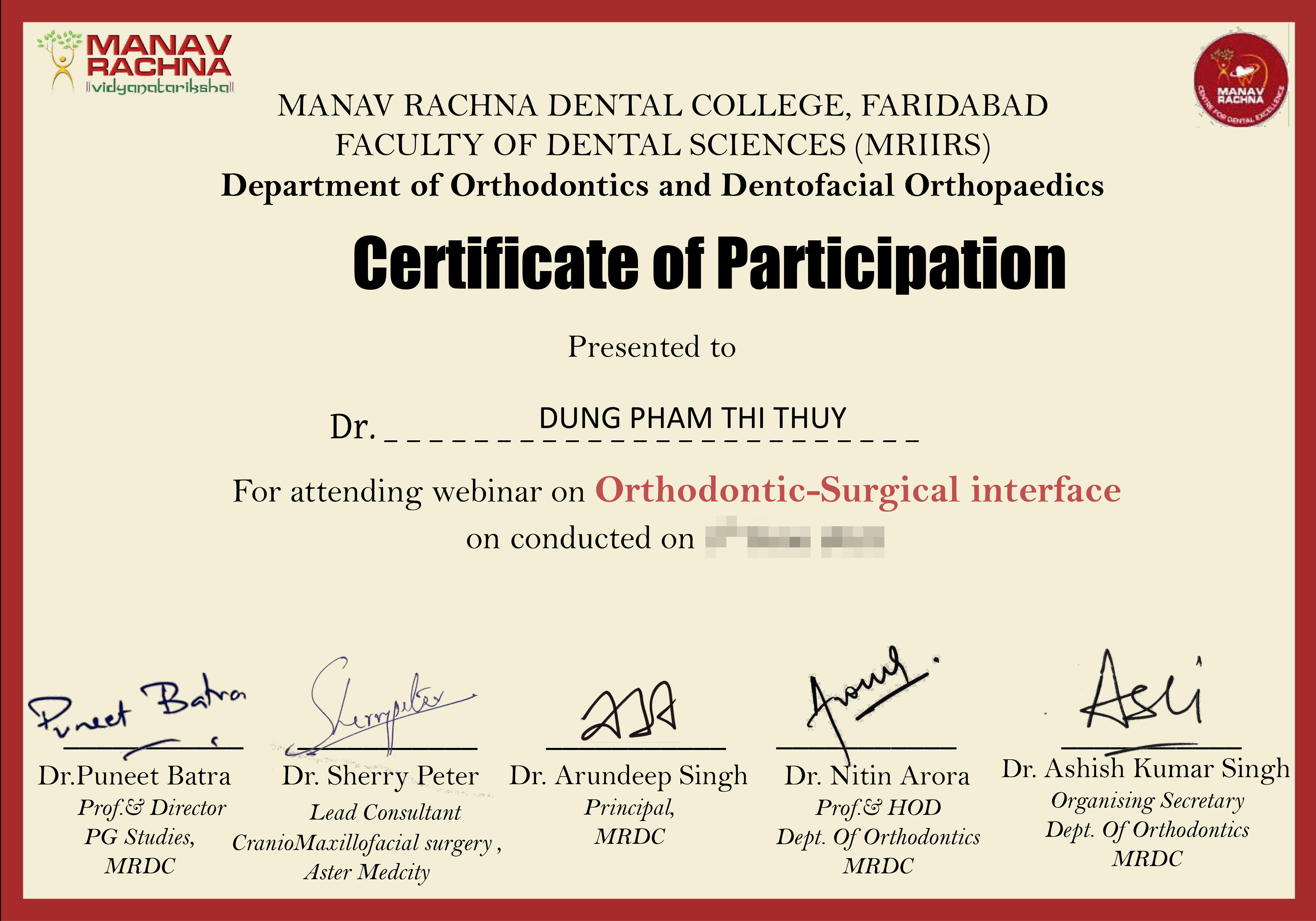 Không dừng lại ở đó, bác sĩ Dung còn tham gia khóa đào tạo chuyên sâu về nghiệp vụ bác sĩ niềng răng Invisalign tại Mỹ và hội thảo Kết hợp Chỉnh nha- Phẫu thuật của trường Đại học Manav Rachna, Ấn Độ để trau dồi và nâng cao kỹ năng của bản thân.