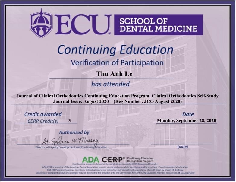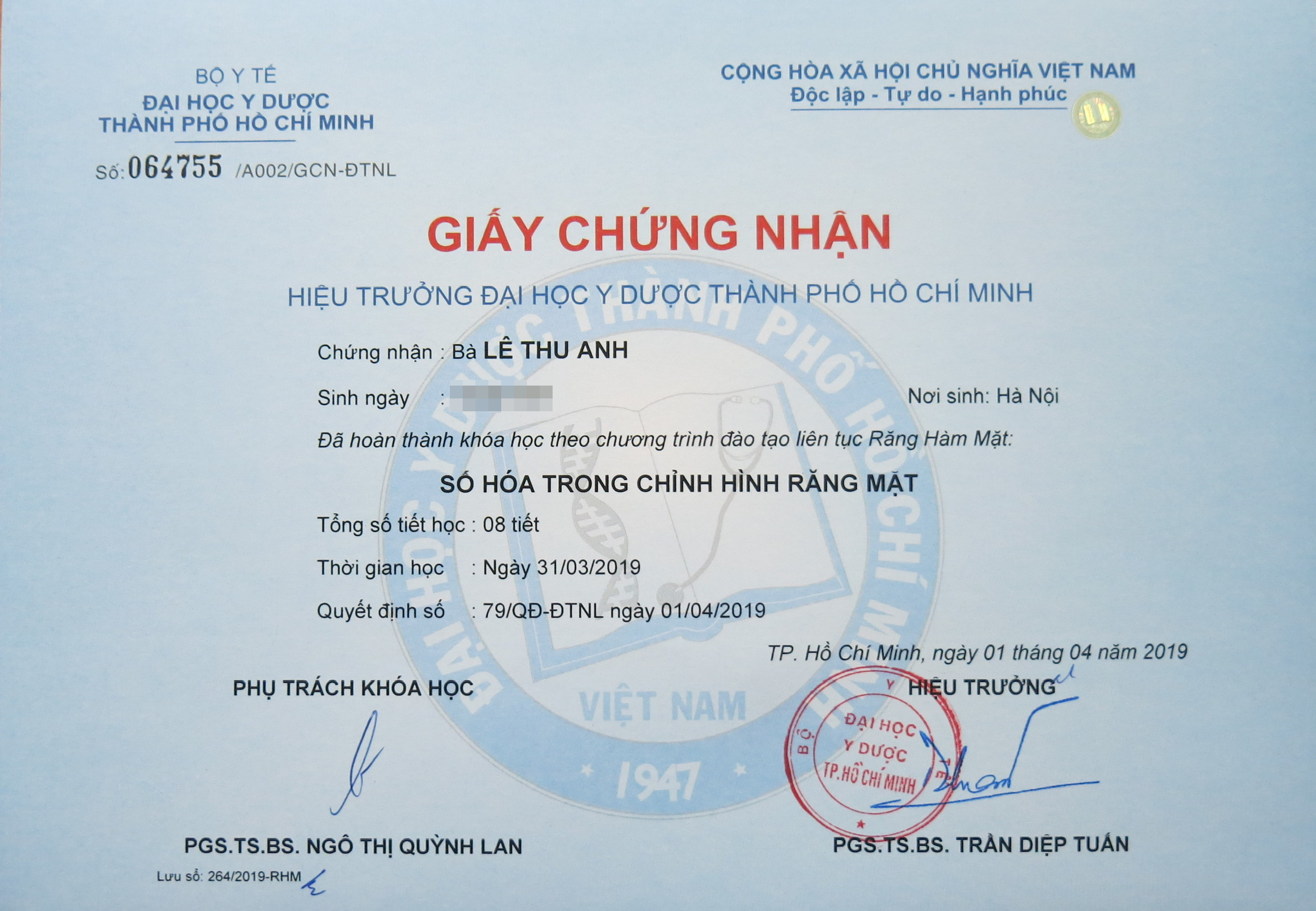 Ngay từ những năm đầu hành nghề, trong bối cảnh nha khoa Việt Nam còn hạn chế về công nghệ và phương pháp điều trị, bác sĩ Thu Anh đã chủ động lựa chọn con đường tu nghiệp chỉnh nha tại Hoa Kỳ. Tại đây, bác sĩ được đào tạo bài bản cả về lý thuyết và thực hành lâm sàng, tiếp cận các kỹ thuật chỉnh nha tiên tiến và từng bước ứng dụng phù hợp vào điều kiện điều trị tại Việt Nam.