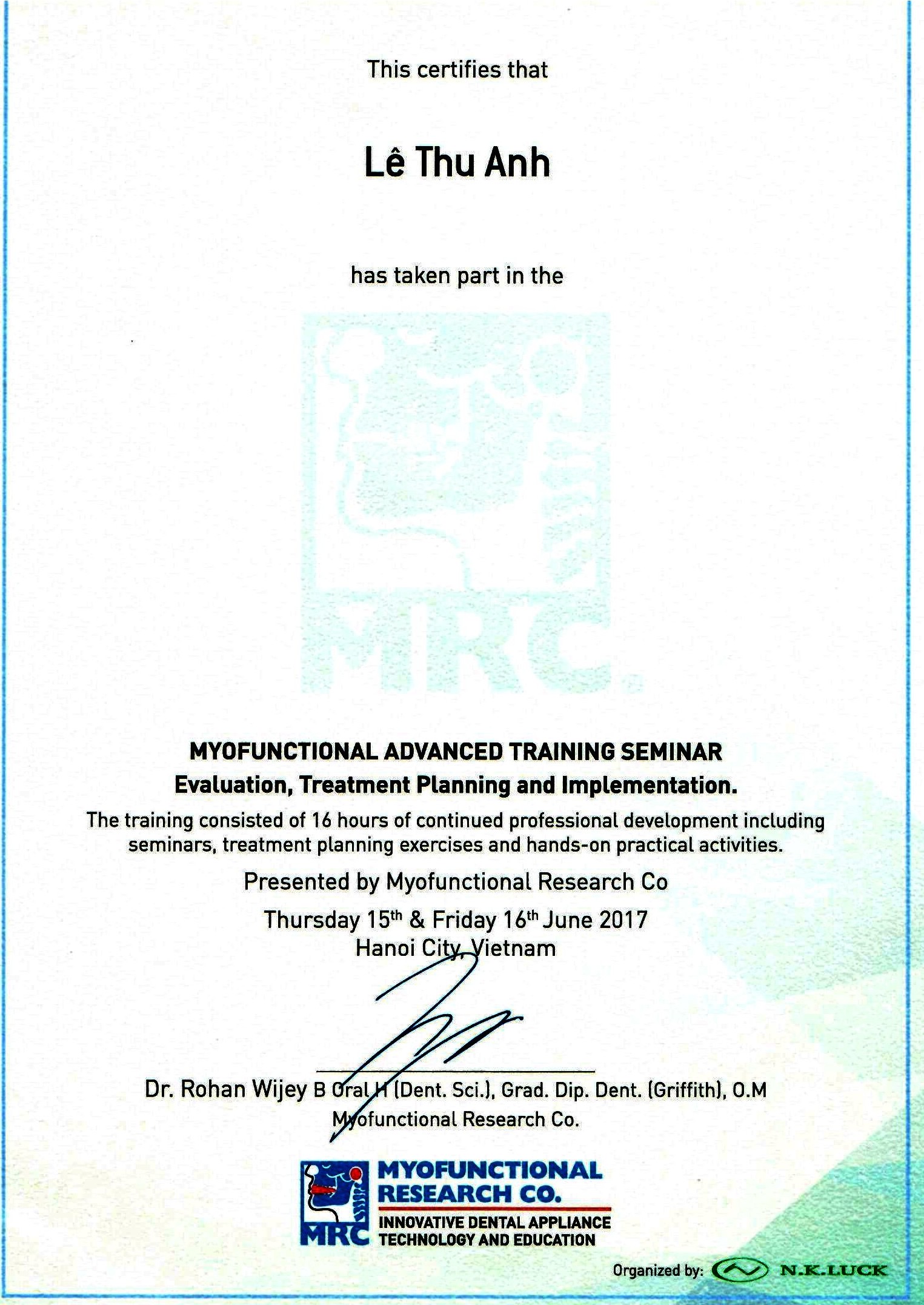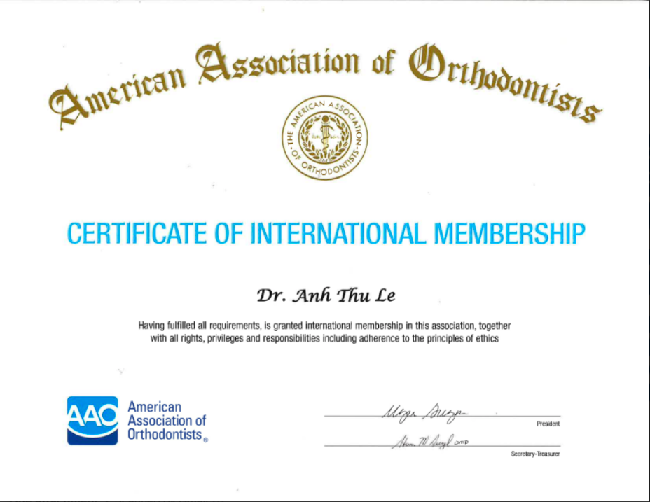 Bác sĩ chỉnh nha Thu Anh là bác sĩ niềng răng tốt nghiệp loại Giỏi ngành Răng – Hàm – Mặt, Đại học Y Hà Nội, hiện là thành viên Liên đoàn Chỉnh nha Thế giới (World Federation of Orthodontists – WFO). Bác sĩ sở hữu nền tảng học thuật quốc tế vững chắc, từng tu nghiệp chuyên sâu về chỉnh nha tại Hoa Kỳ, tham gia các chương trình đào tạo chuyên sâu tại châu Âu, đồng thời là diễn giả và bác sĩ dịch cabin tại nhiều hội thảo chỉnh nha quốc tế.