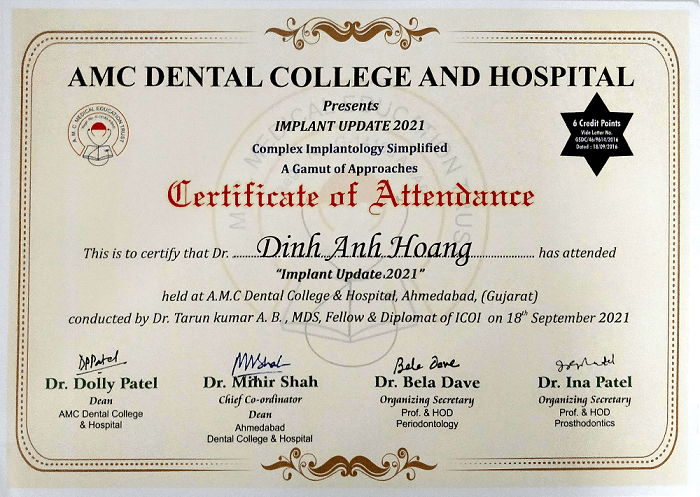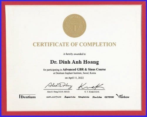 Bác sĩ Đinh Anh Hoàng là bác sĩ chuyên khoa cấy ghép implant tại Nha khoa Lạc Việt Intech. Sau khi tốt nghiệp Đại học Y Hà Nội - chuyên khoa Răng Hàm Mặt, bác sĩ Đinh Anh Hoàng tiếp tục tham gia nhiều khóa học chuyên sâu về trồng răng implant; cải tiến công nghệ nâng xoang trong trồng răng implant, chương trình cập nhật công nghệ trồng răng implant để nâng cao kiến thức chuyên môn và cập nhật thêm nhiều công nghệ điều trị tiên tiến nhất.