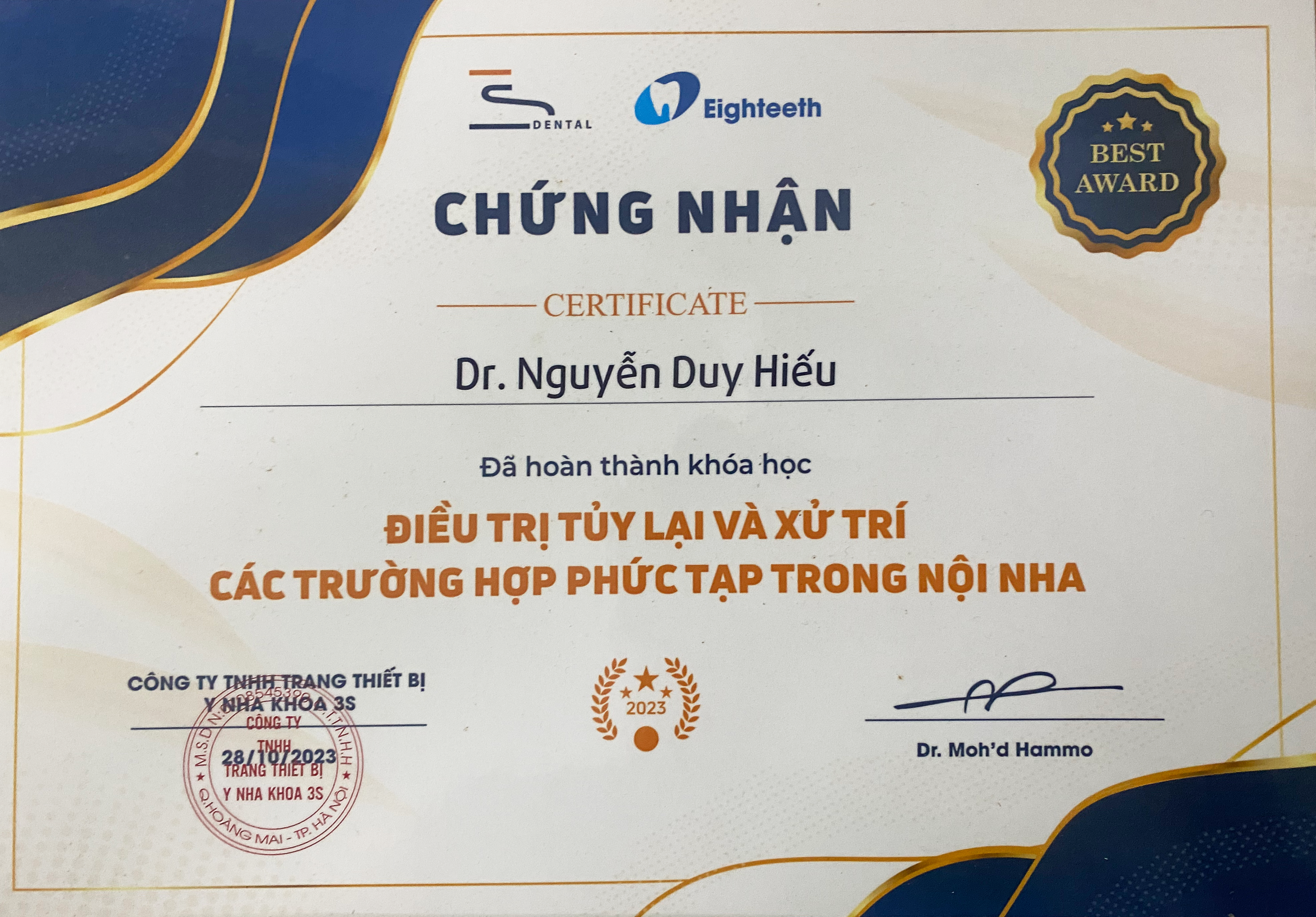 Tốt nghiệp khóa điều trị nội nha lại do Dr. Moh Hammo đào tạo