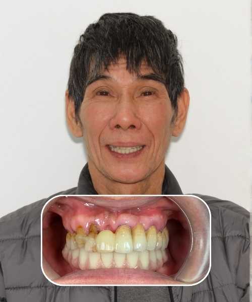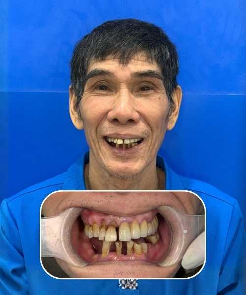 Chú Lê Khắc Thế tìm đến Lạc Việt Intech khi niềm tin vào các phương pháp làm răng truyền thống đã hoàn toàn cạn kiệt. Tình trạng mất răng lâu ngày không chỉ khiến gương mặt chú trở nên móm mém, già hơn tuổi mà còn biến mỗi bữa ăn trở thành một nỗi ám ảnh kinh hoàng.