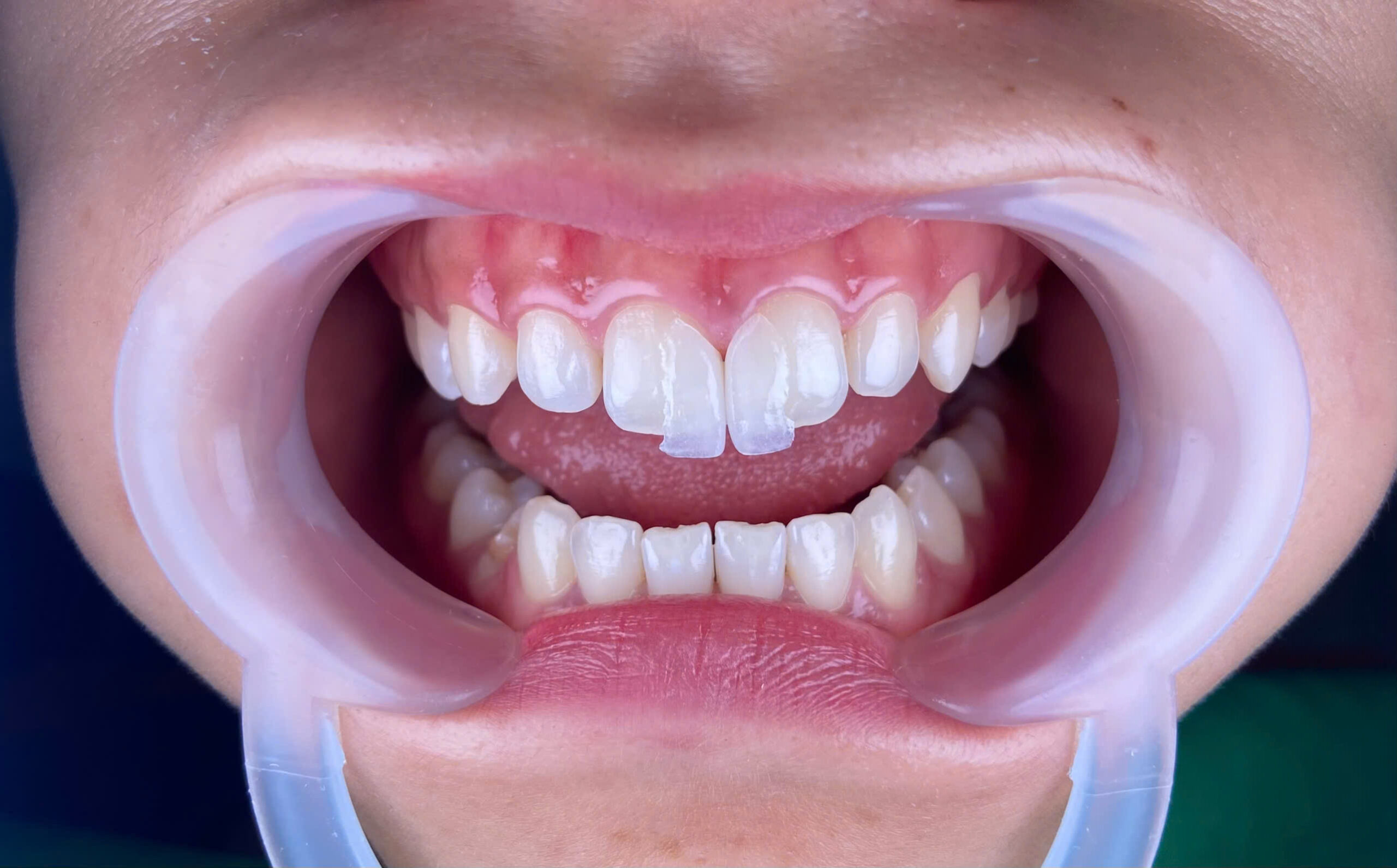 - Cung răng lùi về phía lưỡi, cần tăng độ dày mặt ngoài để đưa răng về đúng cung cười thẩm mỹ.