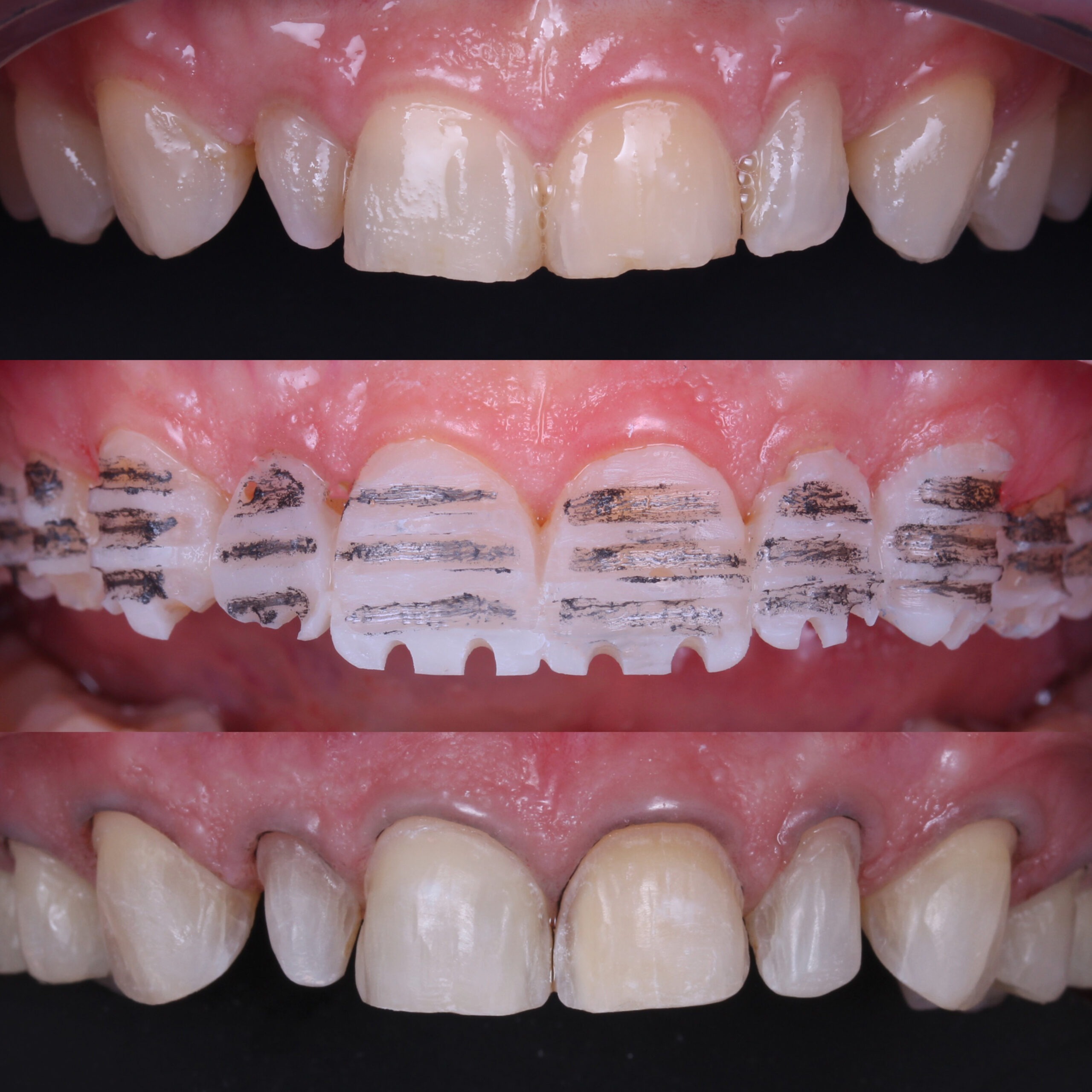 Với những răng lệch lạc, thời gian mài chỉnh để tạo trục song song cho các miếng dán có thể tăng gấp đôi so với răng thẳng hàng. Thao tác sửa soạn răng này cũng ảnh hưởng đến độ bền kết nối và thời gian thử răng.
