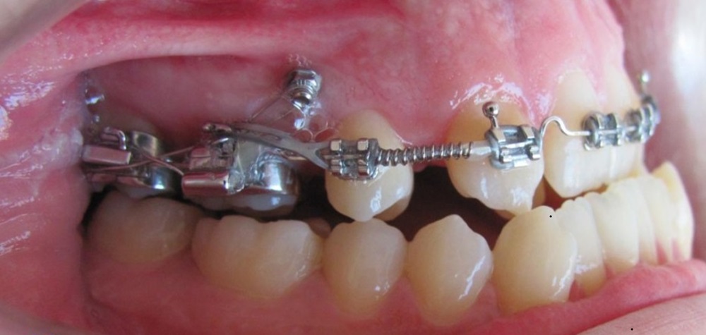 Khi ta tác dụng một lực để kéo răng 7 tiến về phía trước, sẽ có một phản lực kéo các răng cửa lùi về phía sau. Nếu nhóm răng cửa bị kéo lùi về phía sau quá nhiều thì sẽ dễ gây ra tình trạng “móm”, mất thẩm mỹ.