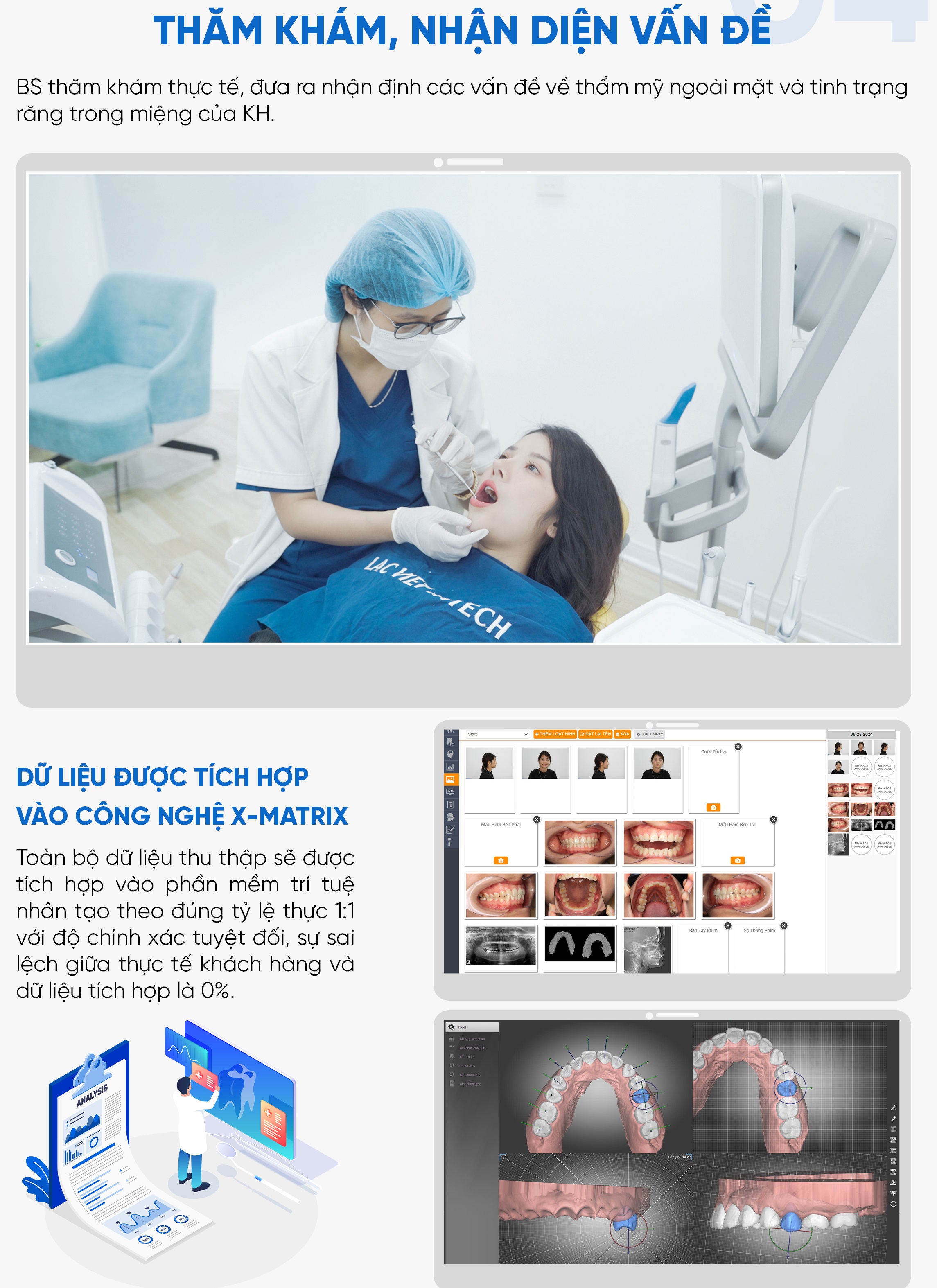 Tại Lạc Việt Intech, toàn bộ quy trình này được triển khai dựa trên công nghệ niềng răng X-Matrix, giúp chuẩn hóa việc phân tích – lập kế hoạch – mô phỏng điều trị trong một hệ thống đồng bộ và có kiểm soát.