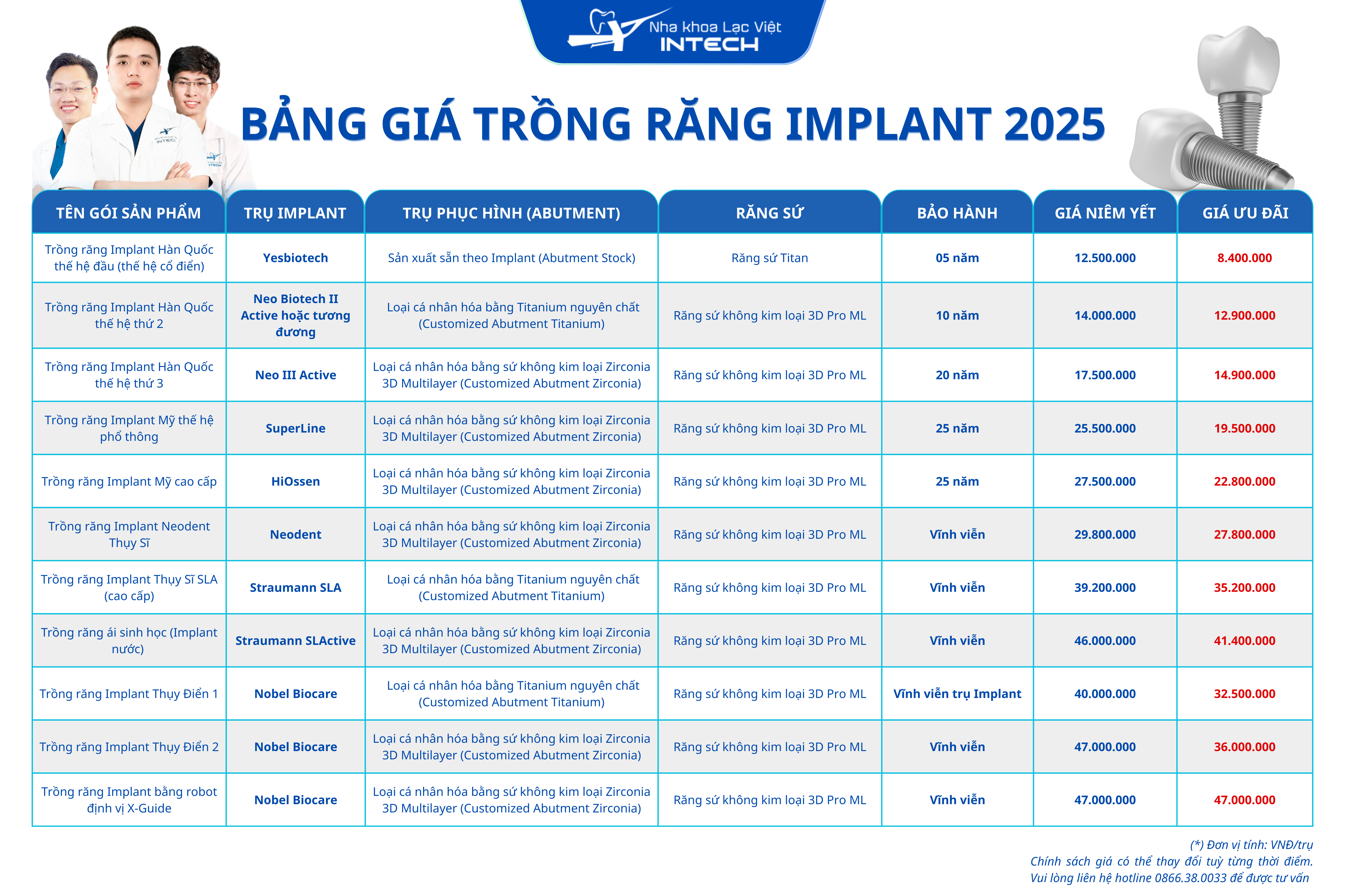 (Bảng giá trồng răng Implant tại Nha Khoa Lạc Việt Intech)