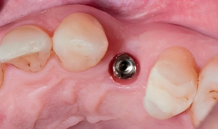 Một trường hợp sử dụng abutment sản xuất sẵn có cổ răng thắt nhỏ, lợi không được đẩy phồng khiến cho răng xấu, bị giắt thức ăn.